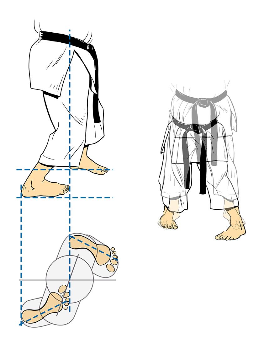 For example, stand in Sanchin close to a wall and push it with your fist while keeping your knees straight. Then do the same with slightly bent knees. You should feel how power comes from the ground. The effort feels smaller, but the effect is stronger, and your body works as one unit.